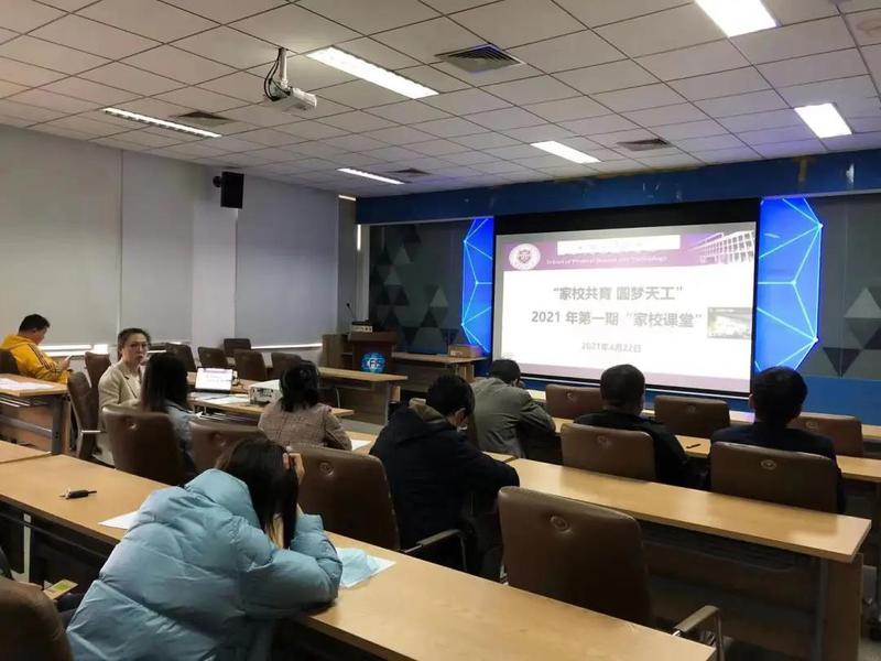 为深入贯彻落实《市教育关于深入推进家庭教育的通知》(津教政办[2020]139号)、《8x8x 深入推进家庭教育实施方案》等文件精神,2021年4月23日,8x8x “家校共育 圆梦天工”2021年第一期家校课堂在学院A401会议室举行。学院党委副书记金笛,学院团委书记、学办主任胡洋,教学办副主任吕韫,辅导员王亚琼和全体班导师出席了线下会议,学生家长代表则同步参加了线上会议,参会人数达260人。会议由学院党委副书记金笛主持。