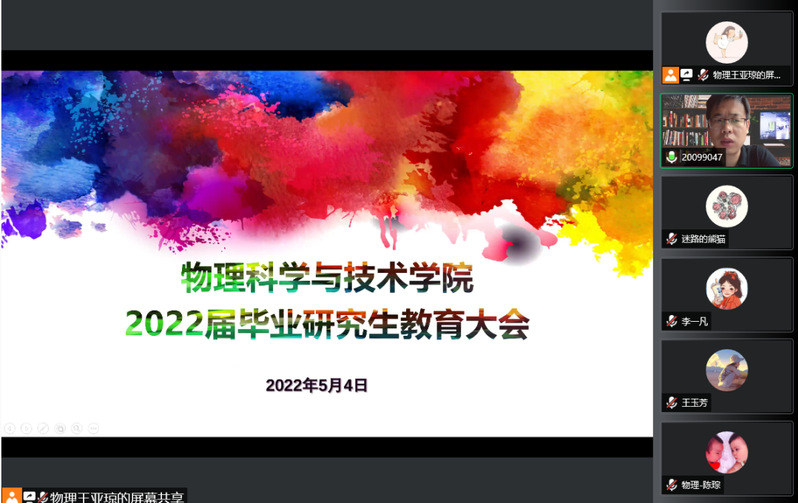 为进一步加强毕业生离校教育和毕业生党员的党性教育,2022年5月4日下午,8x8x 通过腾讯会议召开了2022届毕业研究生教育大会暨毕业研究生主题党课教育活动。学院班子全体成员、导师代表、办公室、科研办、学生办工作人员以及2022届全体毕业研究生参加了此次大会。会议由学院党委副书记贾彦军主持。