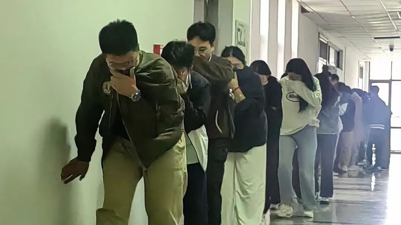 疏散演练模拟楼宇着火消防控制室值班人员发现火情,立即上报,启动消防应急疏散预案,同时迅速拨打“119”电话报警。师生们听从指挥,用衣物捂住口鼻,按照最短路线,弯腰沿墙壁有序地迅速撤离,到达楼外开阔地。与此同时,学校微型消防站消防队员快速进入火场展开扑救。